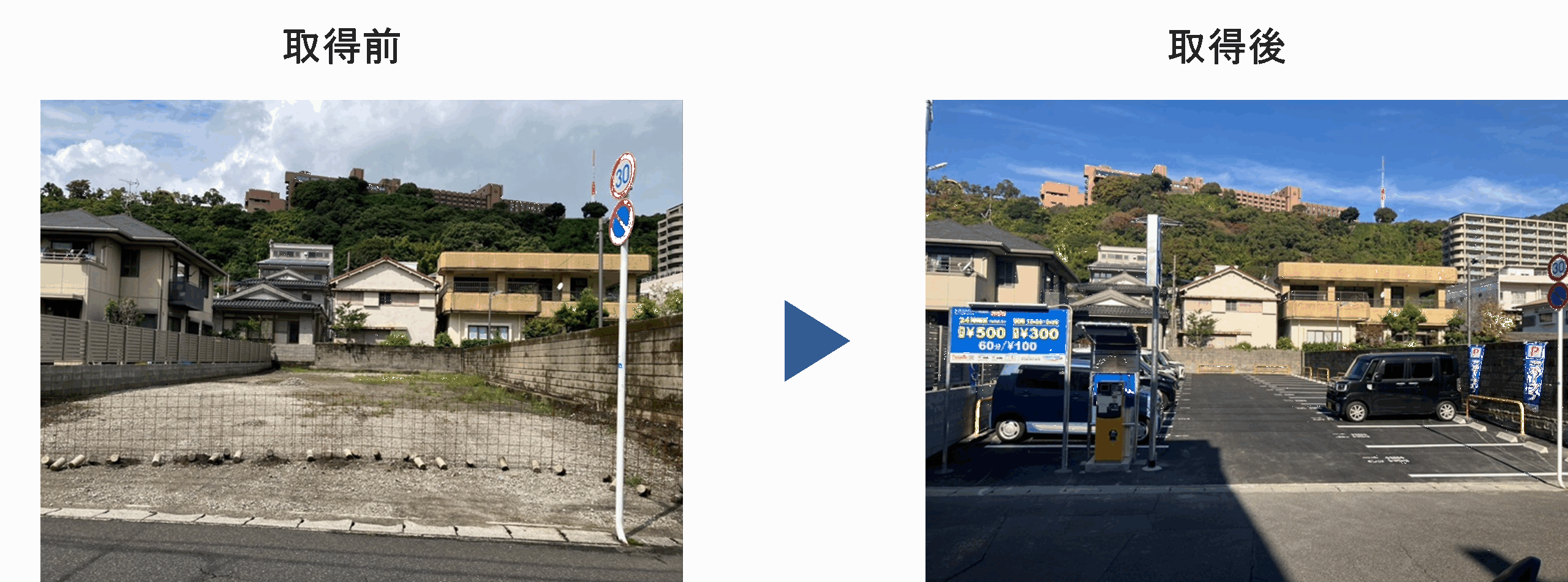 今回、地元の不動産仲介会社様のご紹介により、相続された広い土地の一部を駐車場として活用する売買契約を締結し、時間貸駐車場として整備・運営管理を開始しました。